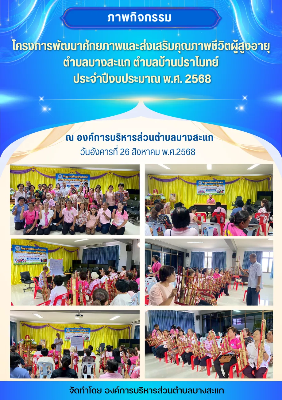 เดิมตำบลแห่งนี้มีชื่อเรียกว่า “ ตำบลสำโรง ”ซึ่งเรียกตามชื่อกำนันคนแรกของตำบล โดยมีวัดอยู่ 1 แห่ง ชื่อวัดสระแก้วมณีศรี ตั้งอยู่ด้านทิศเหนือของตำบล (บริเวณหมู่ที่ 1 ในปัจจุบัน) และมีวิหารเก่าอยู่ 1 แห่ง ตั้งอยู่ ริมคลองแควอ้อมในปัจจุบัน ต่อมาได้รื้อวัดสระแก้วมณีศรีมาสร้างใหม่ที่บริเวณวิหารเก่าติดริมคลองแควอ้อม แต่เนื่องจากรอบๆบริเวณดังกล่าวมีต้นบางสะแกขึ้นอยู่ล้อมรอบ จึงเรียกวัดที่สร้างใหม่ว่า วัดบางสะแก และได้เรียกชื่อตำบลสำโรงนี้ใหม่ว่า “ตำบลบางสะแก” ตามชื่อวัด เมื่อก่อนตำบลบางสะแกแบ่งการปกครองออกเป็น 12 หมู่บ้าน ต่อมาเมื่อวันที่ 15 สิงหาคม 2525 ได้แยกหมู่บ้านออกไป 5หมู่บ้าน เพื่อจัดตั้งเป็นตำบลใหม่ เรียกว่า“ตำบลบ้านปราโมทย์” ...