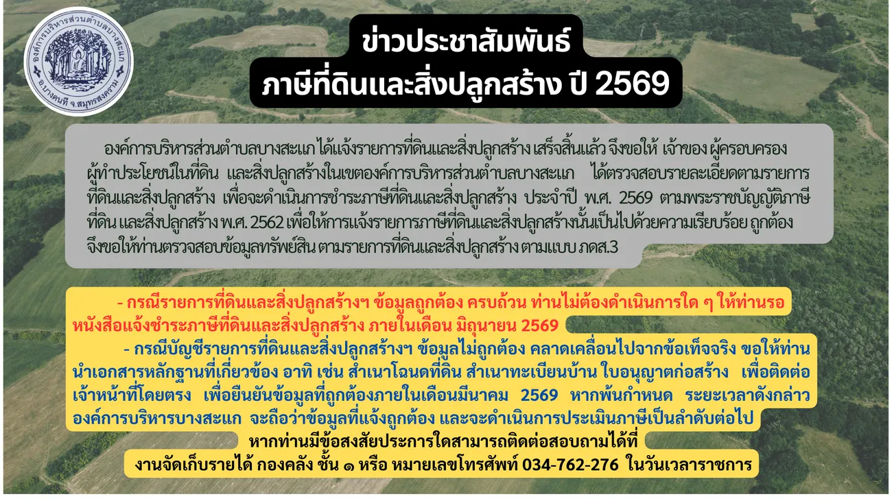 ข่าวประชาสัมพันธ์ เรื่อง ภาษีที่ดินและสิ่งปลูกสร้าง ปี พ.ศ. 2569