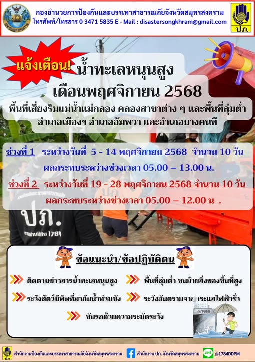 ภาพที่เกี่ยวข้อง ข่าวประชาสัมพันธ์ แจ้งเตือน "น้ำทะเลหนุนสูง เดือนพฤศจิกายน 2568"