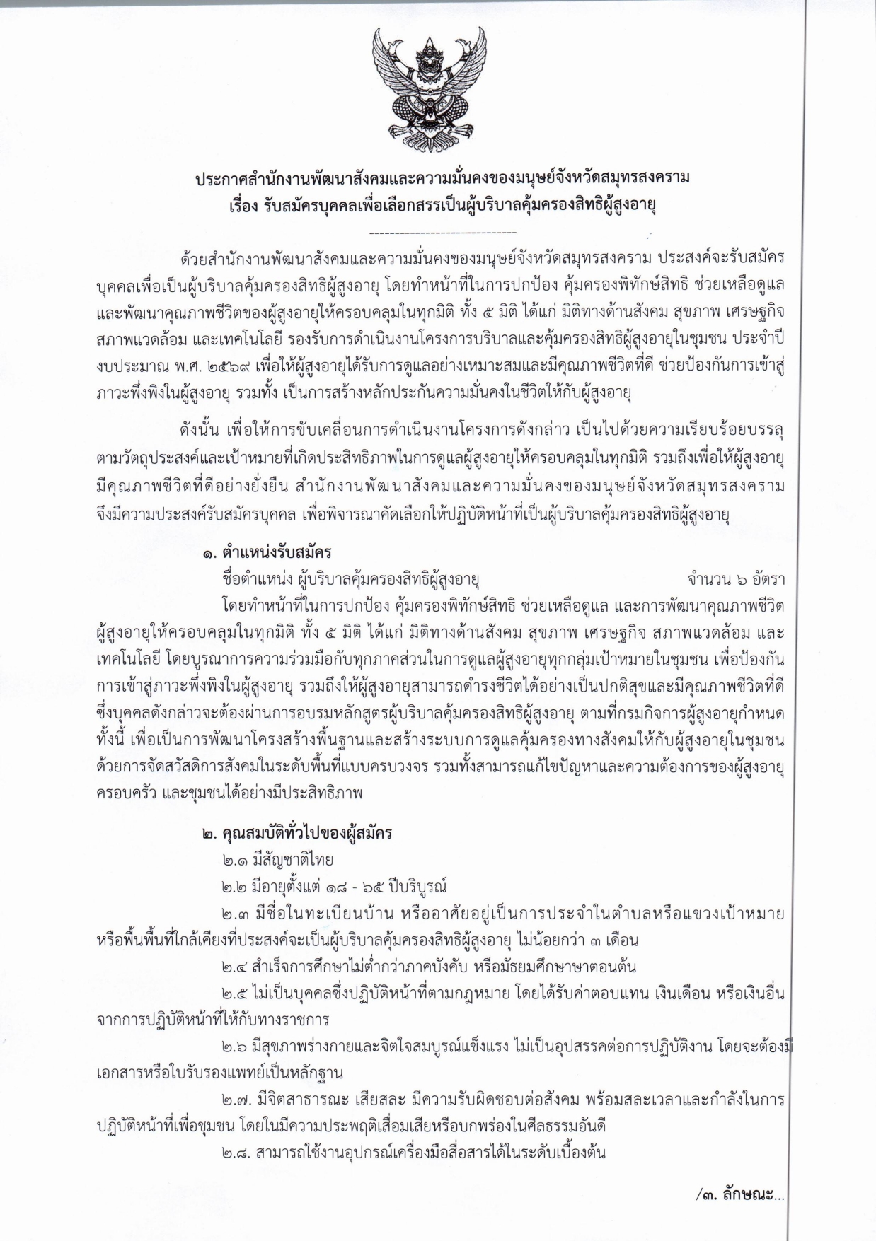 ข่าวประชาสัมพันธ์ การรับสมัครบุคคลเพื่อเลือกสรรเป็นผู้บริบาลคุ้มครองสิทธิผู้สูงอายุ