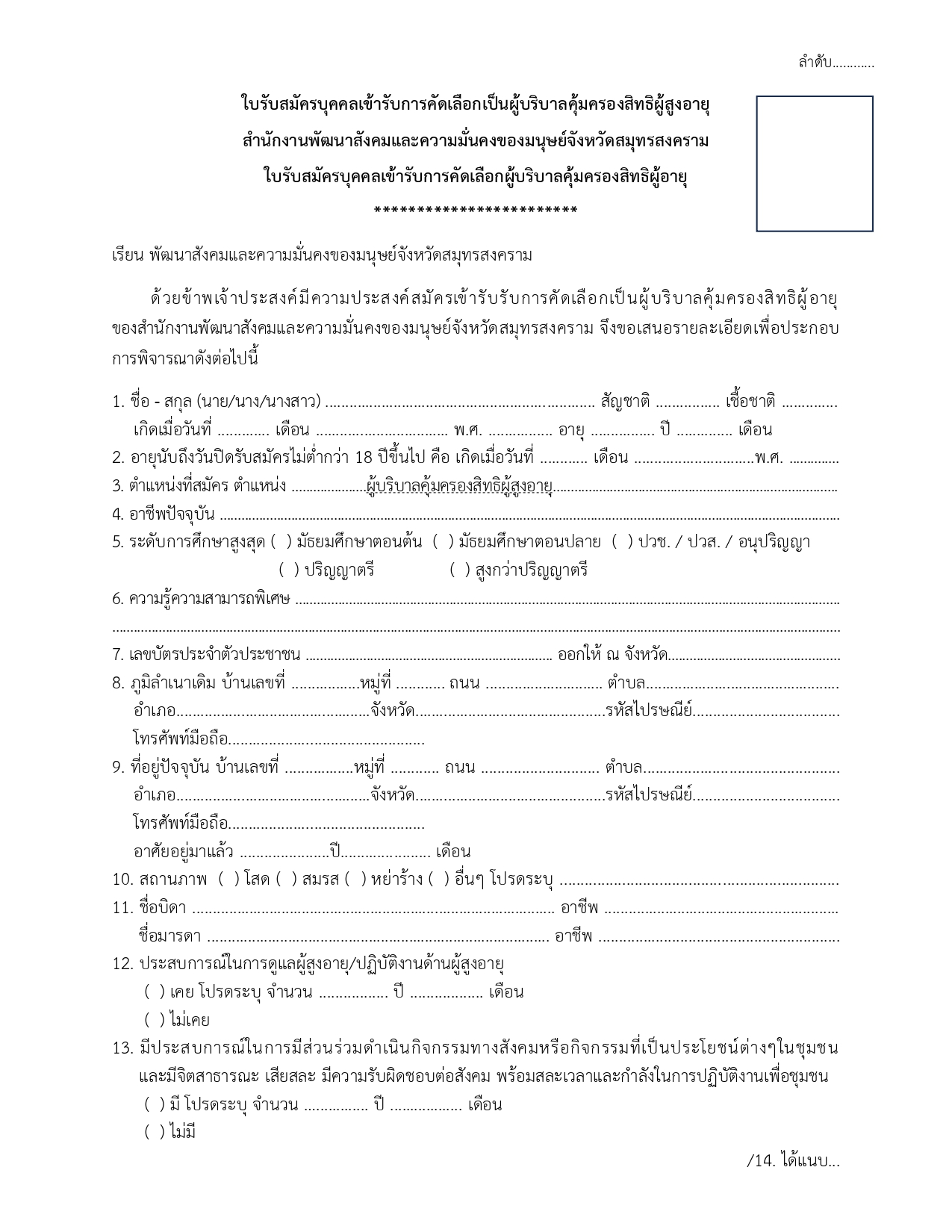 ภาพที่เกี่ยวข้อง ข่าวประชาสัมพันธ์ การรับสมัครบุคคลเพื่อเลือกสรรเป็นผู้บริบาลคุ้มครองสิทธิผู้สูงอายุ