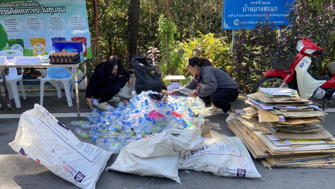 กองสาธารณสุขและสิ่งแวดล้อม องค์การบริหารส่วนตำบลบางสะแก ร่วมกับ คณะทำงานกิจกรรมธนาคารขยะรีไซเคิลชุมชนตำบลบางสะแกและตำบลบ้านปราโมทย์ ลงพื้นที่รับซื้อขยะรีไซเคิลจากสมาชิกธนาคารขยะฯ ตามโครงการธนาคารขยะรีไซเคิลชุมชนตำบลบางสะแก