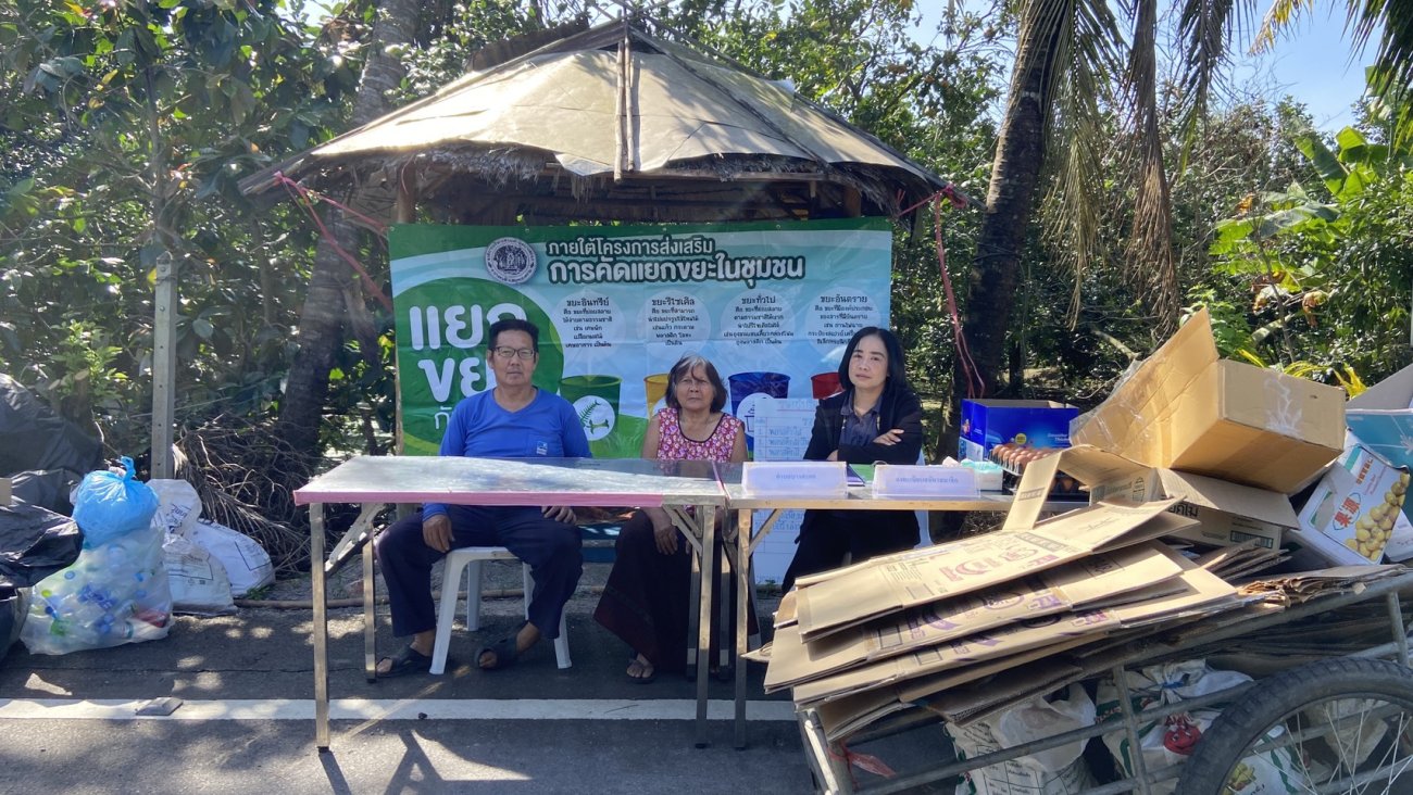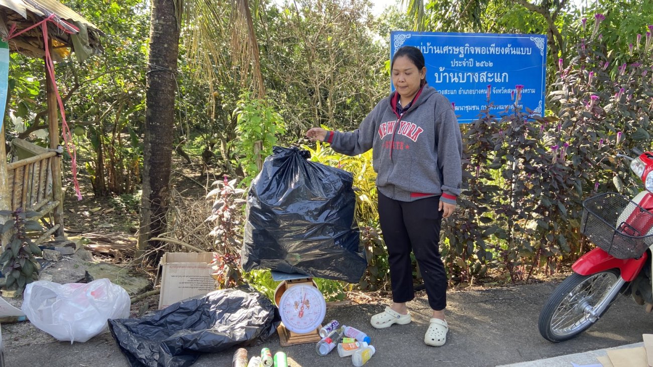 รับซื้อขยะรีไซเคิล ณ ธนาคารขยะฯ สาขาบางสะแก บริเวณที่ทำการผู้ใหญ่บ้าน หมู่ 2 ตำบลบางสะแก